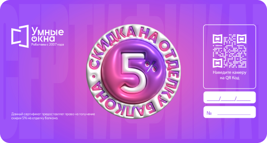 Дополнительная скидка в размере 5000 рублей на заказ окон. Можно получить в качестве «секретного приза» от замерщика.